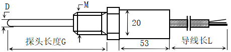 | WZPM-201A | Pt100 Pt500 Pt1000 | -150~300℃ | <10S | 直徑D=6mm 螺紋M=M8×1 |